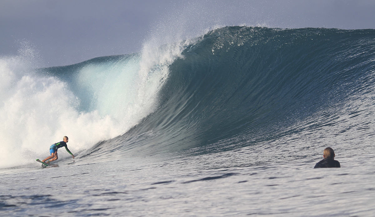 On my first day, I woke up to a pumping Lakey Peak. It’s a sick wave–a perfect peak with a long left and two barreling sections at low tide. The right is kind of like an easier version of Backdoor, if there even is such a thing. At high tide, it becomes an incredible performance wave, like Trestles on steroids. We surfed our brains out that first morning, came in and had breakfast at Fatmahs, then went and surfed Periscopes in the afternoon. This became our routine for the next two weeks.