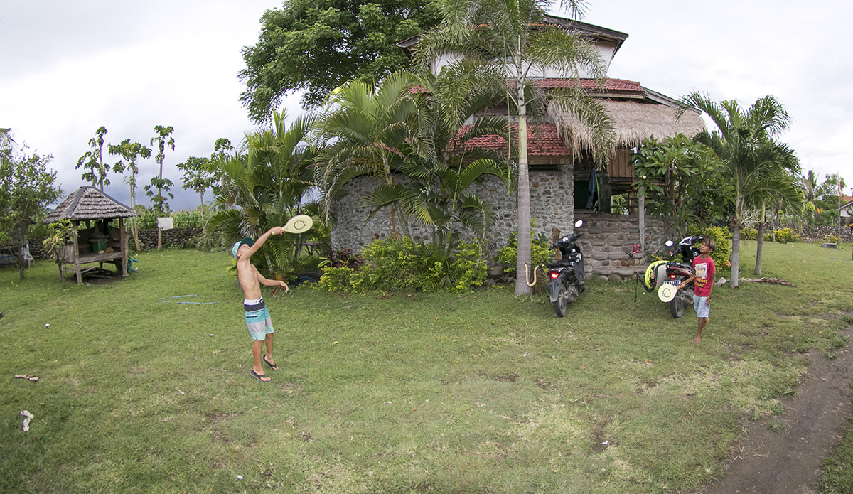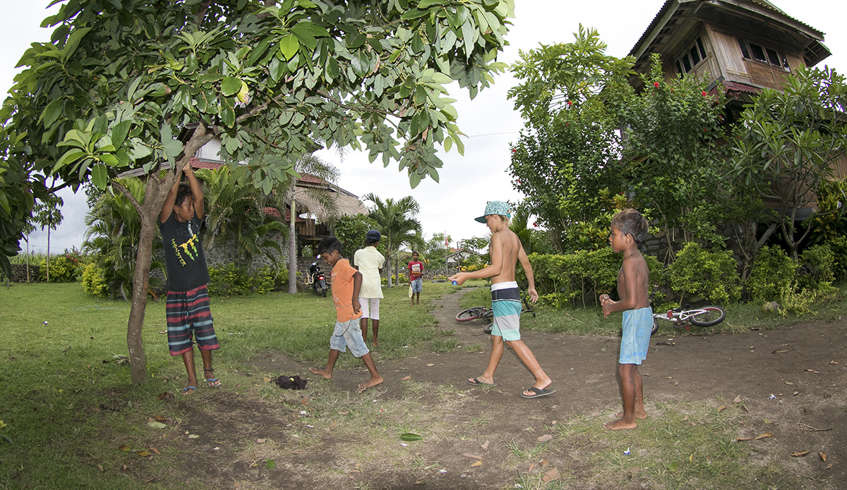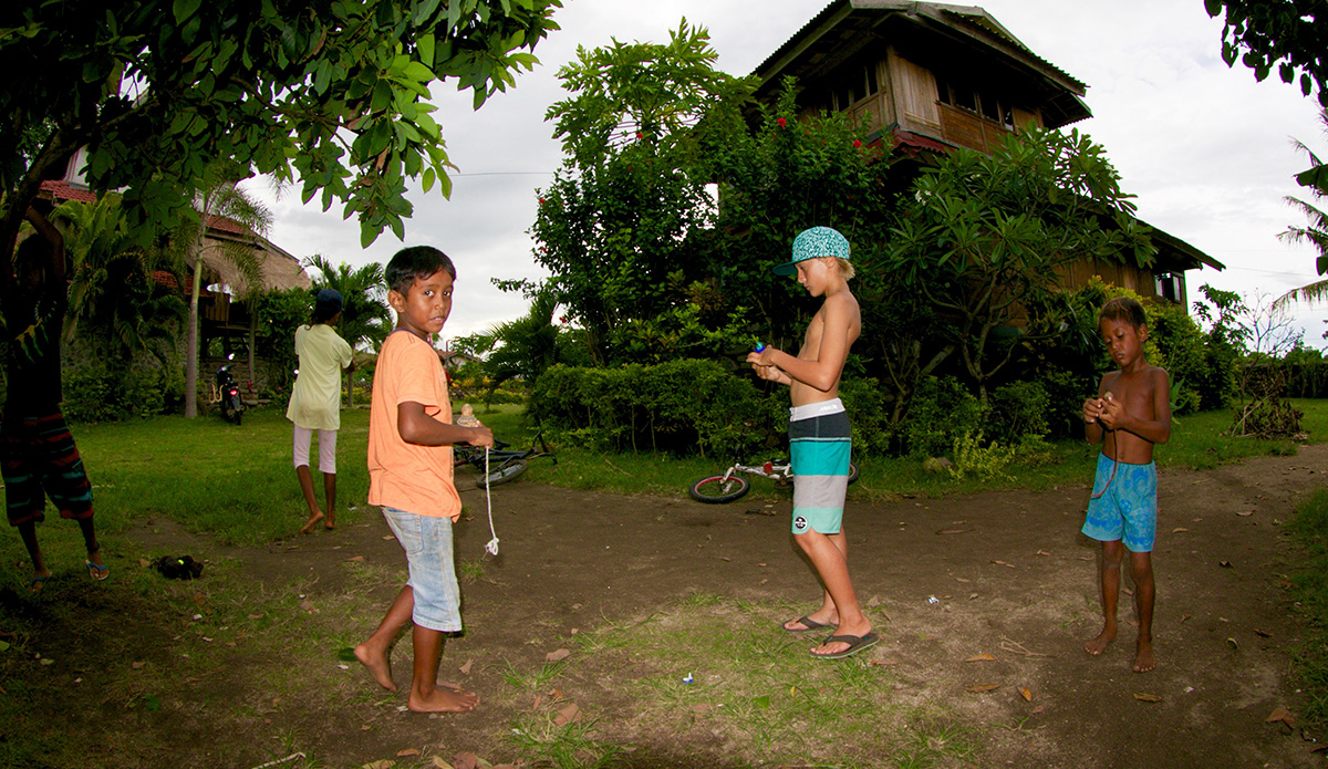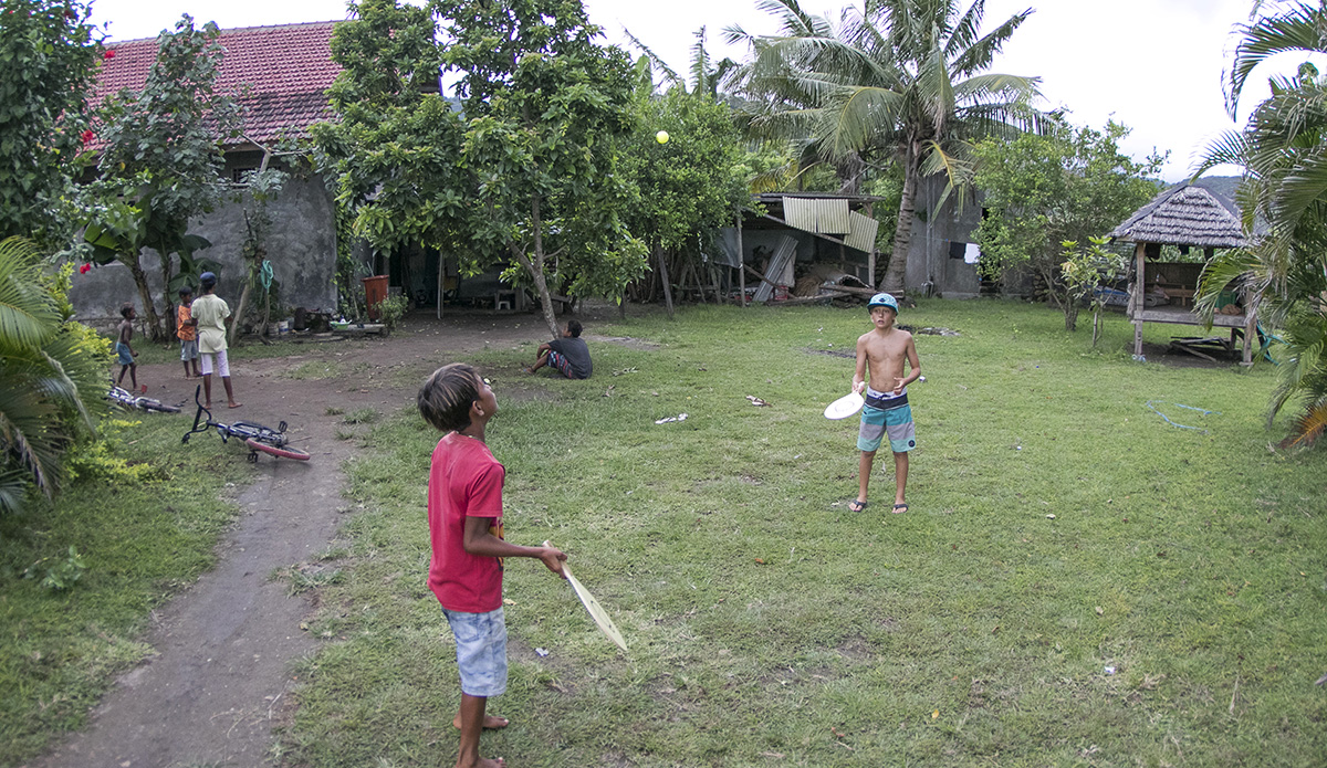 That same day I also got to meet a lot of the local kids. Waduha, Eka, Fajuri, Rasa, Rama, Rafi became good friends on our trip, surfing and hanging out at Nungas a lot. They were so nice to me and really welcomed me into their group. We played with tops they made out of wood themselves and they even taught me how to speak some Indonesian. I brought a football and taught them how to play. It’s just really cool to know that you can go anywhere in the world and meet nice people. I will never forget them.