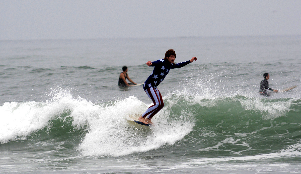 There’s no doubt surfing gives us all a deep sense of freedom. So what can we sliders do to go the extra mile in the water on ‘Merica day?  The ones with wizard-like tailor skills make themselves into a flag, duh.