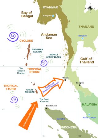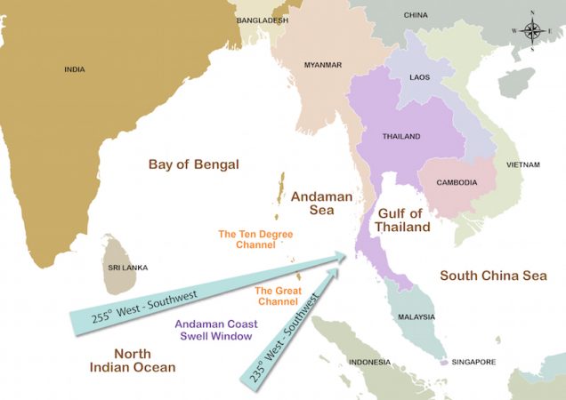 Since Phuket gets less consistent ground swells mainly due to the obstruction of the northern tip of Sumatra, located over 300 km southwest from Phuket’s most southern point, local surfers usually settle for strong wind waves produced across the Andaman Sea. However, SW groundswells originating in the Indian Ocean do occasionally pass through the Great Channel (between Banda Aceh, Sumatra, and the Great Nicobar Island) leaving locals and fortunate well-timed surfer tourists with clean, fun high-quality waves.