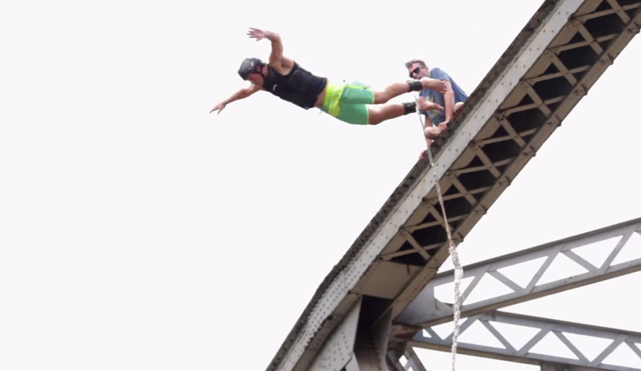 The saddest part is undoubtedly that Poopies downright doesn’t know better than listen to Jamie O’Brien. But he’s an impressionable, persuadable pal and bungie jumping off the top of Wahiawa Bridge probably seemed to the hapless chap like he was simply being a good friend to his main man J.O.B. And with the amount of energy they all put into the slip n’ slide-ramp at Beaver Creek on the North Shore, it wouldn’t be much a surprise if Red Bull capitalized and made it an official event, perhaps even reaching out to the ASP to see if the tour needs another Hawaiian leg.
