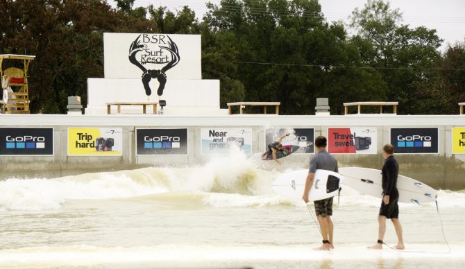 The humidity hit much like the powerful offshore spray coming from a Nicaraguan a-frame when I got off the plane. But again, this was Texas and Central American offshores were far, far away. Stepping onto the deck of the pool, where I’d imagine sand would be on a natural coast, the smell of chlorine wafted through the air and the water lay still with a fog dancing on the surface. I scratched my head in confusion of what to do. Do I wax my board? Do I put on sunscreen? Should I trunk it or do I need neoprene?