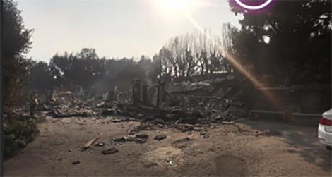 Before we left, I had to go back up and get something for my mother and father-in-law. I went to Kanan Dume Road down a back road and blew by the second check-point on Mulholland. The officers were waving us back but I had to get down to see our home and what was left. There wasn’t anything. Both properties burned to the ground. I walked around with my wife and took it all in. I guess it kind of settled me, even though we’re up against having to completely re-build. I went around and saw a lot of friends’ homes that had burned down. That was even more devastating. It was almost hard to even grieve with how much destruction there was. It really hurt my heart.