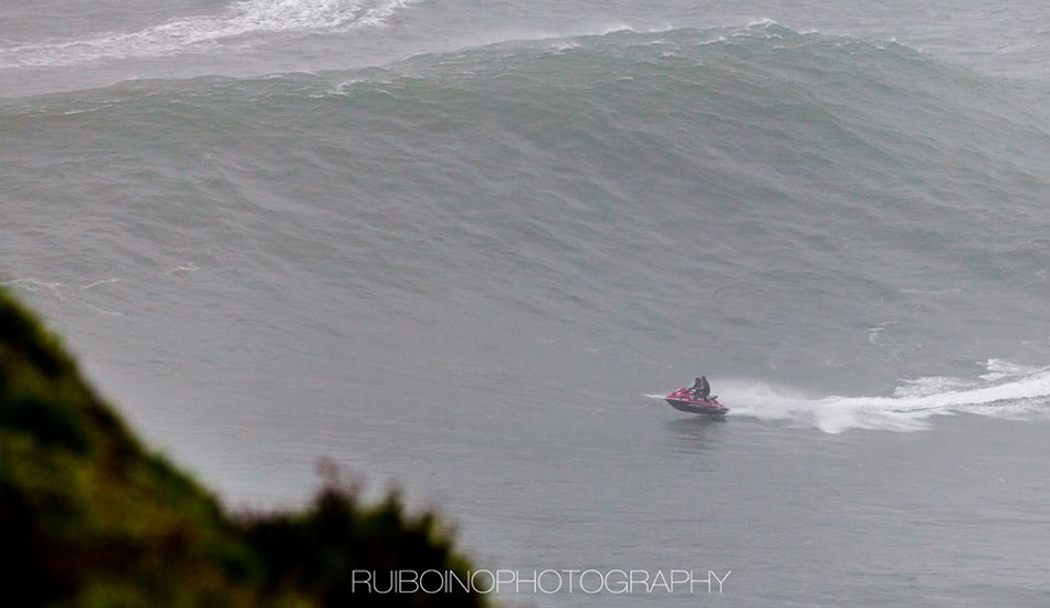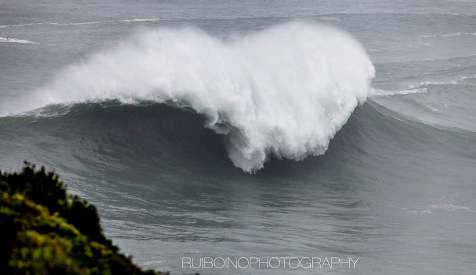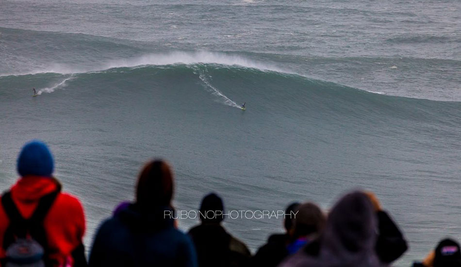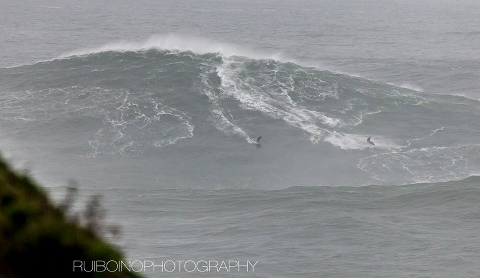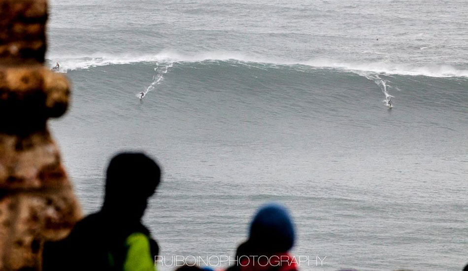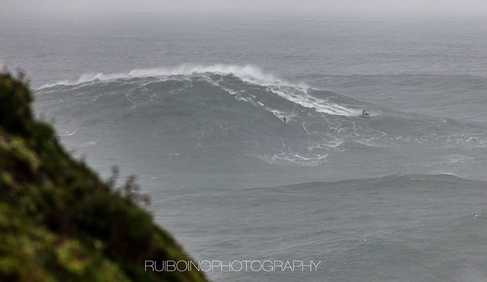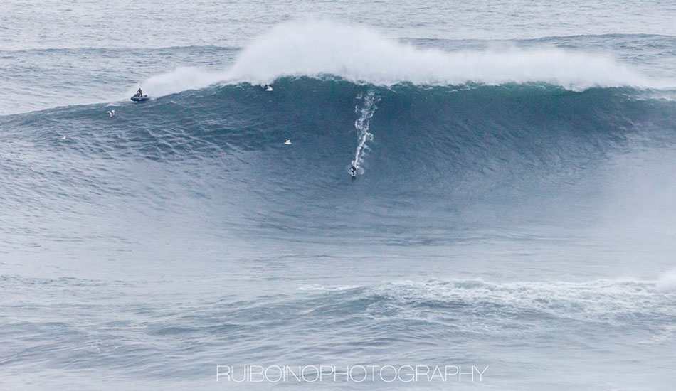 This morning’s XXL swell in Portugal set off big wave alarms around the world. A crew of hellmen/women converged on Nazaré, including Carlos Burle, Pedro Scooby, Felipe “Gordo” Cesariano, Hugo Vao, Maya Gabeira, Rodrigo Koxa, Sylvio Mancuso, Eric Rebiere, Andrew Cotton and of course, Garrett McNamara.