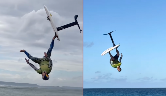 Why the trip down memory lane (and the reminder that I’m getting old)? Because I came across a claim of a world first this morning: world’s first double backie on a hydrofoil. Suddenly, the last 20-plus years of hydrofoil progression and that afternoon drive with Zane Schweitzer flashed before my eyes. I’ve seen a hundred backflips on hydrofoils. We all have. A double though? I can’t think of another.