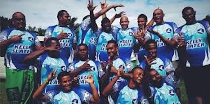 By now, you know about Kelly Slater’s relationship with Fiji, more specifically Tavarua, yes? Didn’t he sponsor a Fijian rugby team that went and put his name on their jerseys? I can only find this image online (apologies for the poor quality):