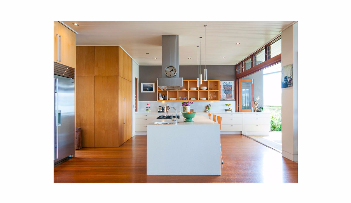 The property itself is insane. Including a boathouse–because if you can afford the house, you can surely afford a boat–and a your own private beach at low tide, it has koi ponds both inside and outside the house. The kitchen opens up onto a waterfront terrace, and the whole thing is designed for “seamless indoor/outdoor living.”