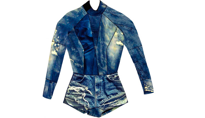 Think of all the places you would wear denim on denim. Now double that, because with this wetsuit you can have the effortless look of denim with the comfort of wearing a toasty wetsuit EVERYWHERE. Now, for the low price of $375, you can wear your wetsuit made of head to butt denim-print to the office, to the coffee shop, to the grocery store, and even to lunch with your girl friends, all while steaming away in 2mm of neoprene. This, ladies, is the American dream. Plus, with the concealed zipper, no one has to know your little secret!