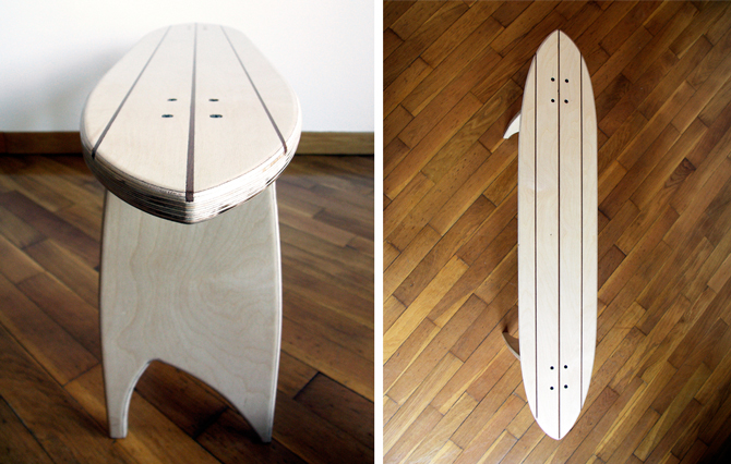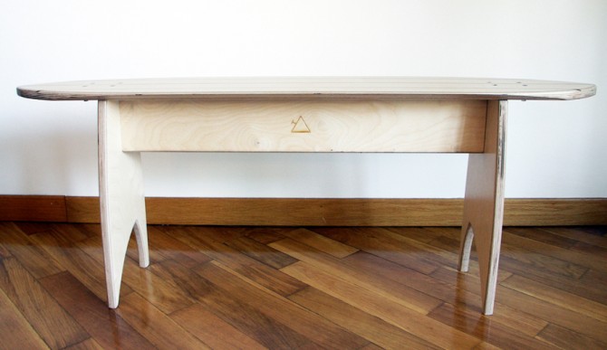 In November 2014, we at Pine & Tree decided to come out with a new product. Our main purpose behind it? To let the customer decide how they wanted to use it. So we handcrafted a plywood twin-tip bench, which happens to also be a skateboard. Imagine: your favorite chair where you like kicking your feet up at the end of the day has a double life. During the day, it’s a bench and it stays at your house, your office, or at your secret spot — wherever you want it to be. At night, though, it turns into a skateboard. By simply removing its legs, anyone can put tracks and wheels on, and go surfing the streets.