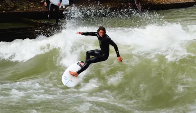 The video actually serves as somewhat of a primer on how to approach surfing the Eisbach for the first time. Rather than starting off at the main wave, the crew opted to learn the ropes on a smaller, friendlier wave in a different portion of the river. “You’re not supposed to go to the main wave first, because everyone will yell at you,” explained Sickos member Will Crumpacker. “It’s super dangerous. If you get hurt it could shut down the wave. It’s important to come to these ones first. Don’t just pull up here and go to that wave.”