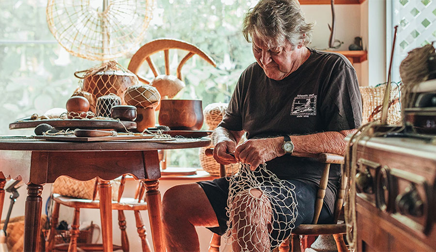 Gary’s creates traditional Hawaiian artifacts using the traditional methods. Photo: Courtesy of OluKai