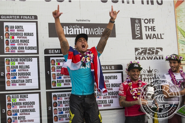 Amidst a fading, glassy swell, 20-year-old Honolulu local Zeke Lau took home the Vans World Cup at Sunset Beach. On top of that, Lau now sits on top of the 2013 Triple Crown ratings along with World Tour surfer Michel Bourez.