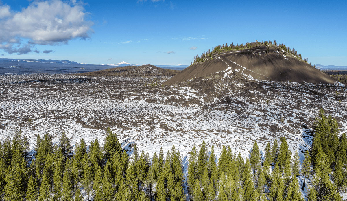 A snowy view of Lava Butte in the Deschutes National Forest near Bend, Ore. Photo: Shutterstock