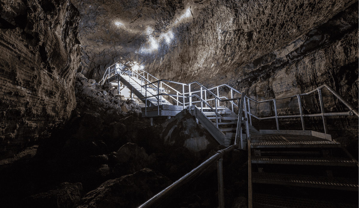 This cave is the longest known lava tube in Oregon. A staircase provides easy access to the spacious interior, and walking to the end and back is a 2.2-mile round-trip journey through pitch darkness.