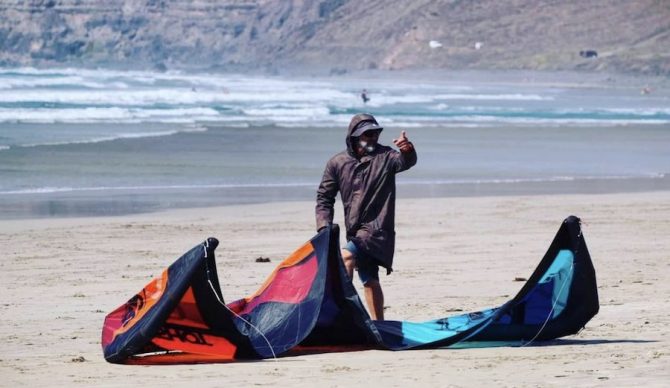 My hosts at Oasis set me up with Ale of Lanzarote Kite, the Lanzarote kite instructor. In the most casual way, he seemed to know everyone on the beach. His spacial awareness and eagle eyes accompanied by a piercing whistle were extraordinary: he caught other kite schoolers in their tracks (not even his own students) before they did damage to themselves or those innocent beachgoers. I quickly realized that if anyone who could get me up in the air quickly and safely, it was Ale.