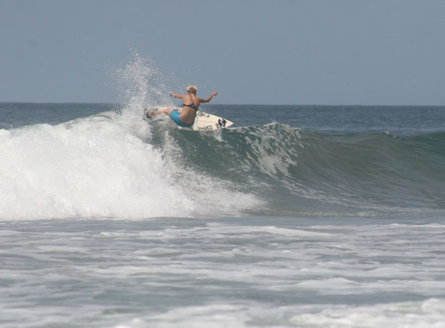After leaving the community center, we went back to Monty’s and put on a surf school for the kids of Jiquilillo. My sponsor, Billabong, donated bikinis and boardshorts for the children. As the other volunteers and I pushed kids into waves, they happily showed off their new gear.