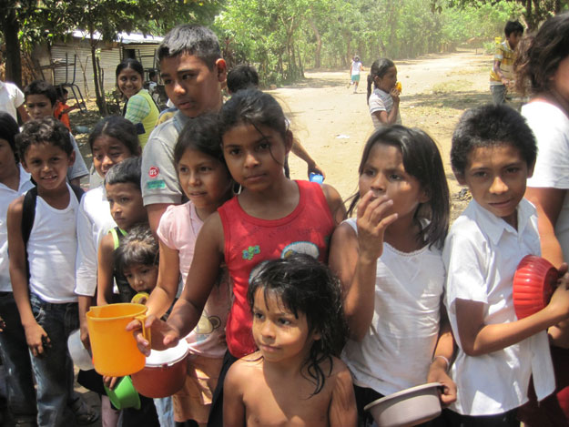 In the Nicaraguan version of "the Projects," the children lined up for hours to get clothing and food. Photo: Infamous Management