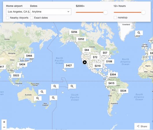 All you do is enter your origin airport, slide how much you’re willing to spend on a flight, how long you’re willing to spend on a plane, and select dates (which can be as non-specific as “Anytime” to actual departure and return dates), and voila!