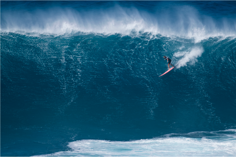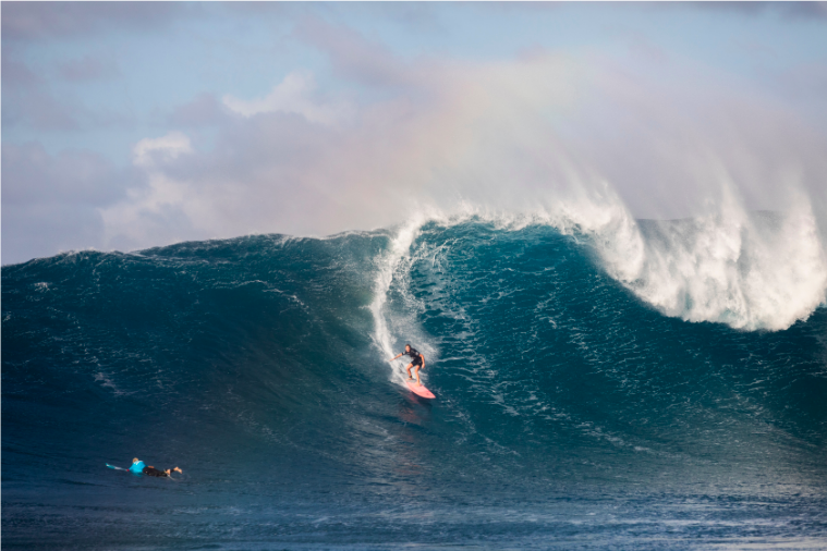 Although Reickert has a hefty collection of accolades, her proudest accomplishments thus far are her third-place finish at the Jaws Big Wave Championships in 2019 and being the first and only women to ever foil the Ka’iwi Channel between Molokai and Oahu.