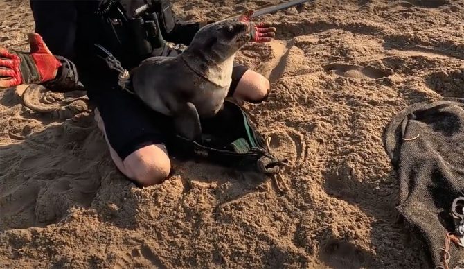 Rescuing fur seals like this one is rewarding on its own, but when a baby appears to not want to leave your lap… well, that’s a memory to keep. Photo: YouTube//Screenshot