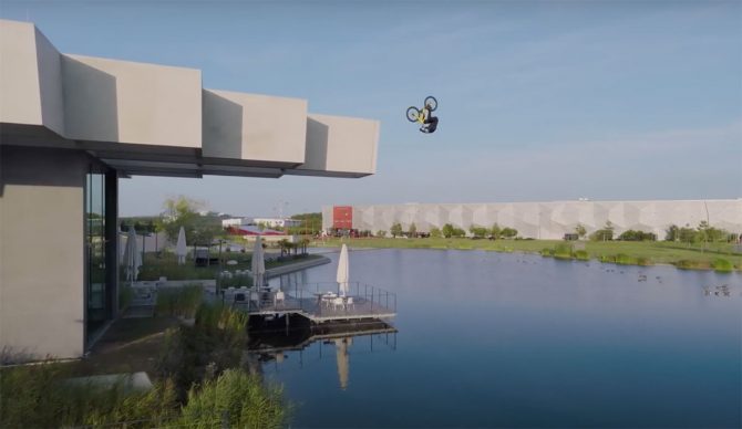 It would be fun to be Danny MacAskill. Put him on a bike and any type of terrain turns into a playground. His most recent terrain of choice? The Adidas HQ.