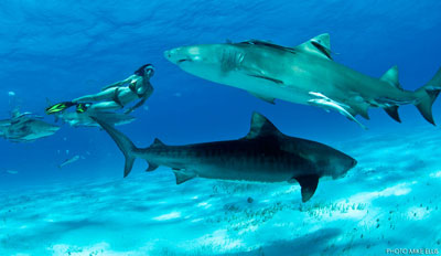 I’ve returned to shark lover’s paradise, Tiger Beach in the Bahamas, on another photographic expedition on board the Dolphin Dream owned by Scott. I’m here for two weeks, working on gathering images and footage for a new shark awareness video called Freediving with Sharks, and for my book project for the AfriOceans Conservation Alliance, the organization I founded and run. Freediving with the second most dangerous shark in world with nothing but my bikini made made me feel vulnerable, to say the least.