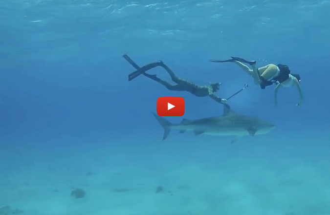 What do you give big wave hell-man Mark Healey and base jumper/ wingsuit-woman Roberta Mancino a Go-Pro and some swim fins? You get some high quality footage of a couple crazies exploring an underwater shipwreck and up close shots of the two tandem riding a shark.