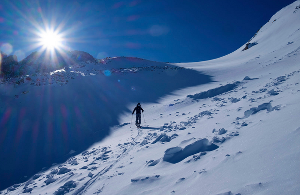 Myself and my partner decided to summit and ride down a northeastern facing chute that we believed had not been subject to the sun as much. We had both ridden this area a few times in years past but had not done this particular chute before, since it’s steeper than some of the others sitting further up valley.
