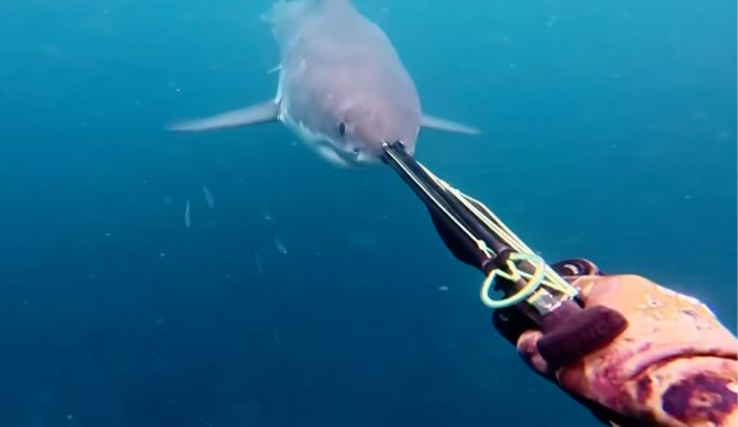 There’s only one thing more chilling than seeing the dorsal fin of a great white cutting through the water near you: coming face to face with the entire beast. An Australian man had just that experience last week, when he encountered one of the ocean giants while spearfishing. And he caught the whole thing on video.